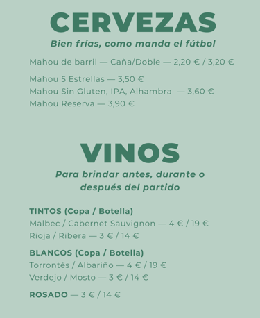 De la Mahou madrileña a una cuidada selección de vinos españoles y argentinos: brindá por el buen momento.